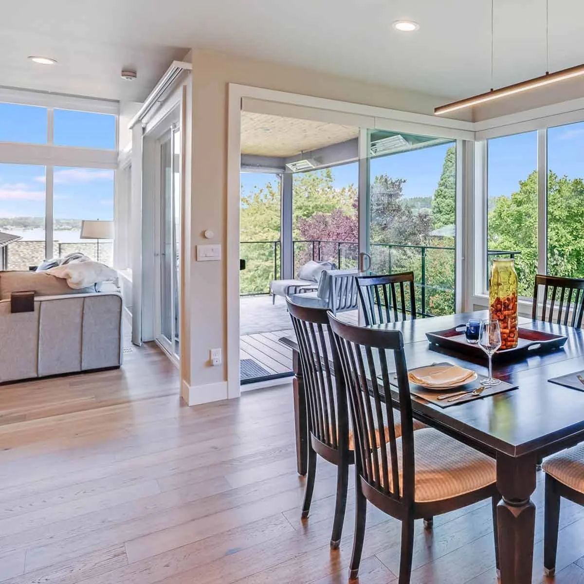 When it comes to entertaining, many people think first of the dining room, and it is indeed a vital place for carefully considered seating, lighting, and comfort. Our Kennydale I, II and III houses were all designed for entertaining, with the main living areas situated upstairs to take advantage of the nice views and access to a deck.